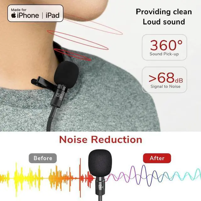 Lightweight Clip-on MicThe mini microphone for iPhone weighs only 0.32 oz, is lightweight to wear, extremely portable for you to carry around. The ultra-small design makes the lav microphone unobtrusive and easy to seal into clothes for various applications.