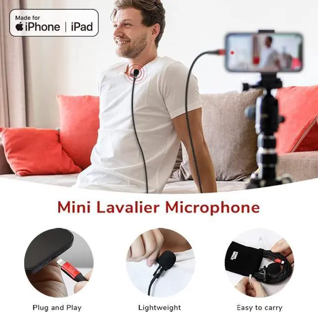 Apple Lightning MicrophonePixel Finch lapel microphones are Apple MFi certified. This means they are fully compatible with iOS devices and offer stronger, more stable performance. With the certified chip, the lav microphone is extremely sensitive, doesn' t make poor contact and won' t damage your iPhone or iPad at all. (Not applicable with iPhone 15 and above)