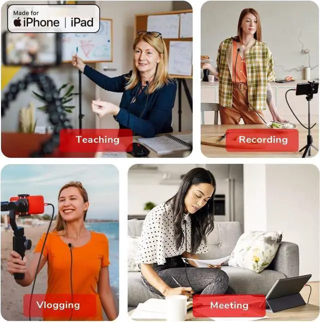 Plug & Play DesignThe clip microphone do not need to be paired and battery free, all you need to do is to simply plug the clip mic for video recording to your iPhone or iPad, and you' re ready to go.