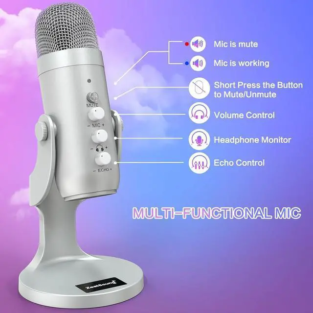 Live MonitoringThis podcast mic offers direct, latency-free monitoring via a 3.5 mm headphone jack. Adjust the desired monitoring level using the volume control, whether you' re gaming, recording content for TikTok, YouTube, Zoom, or Facebook live streams. With this microphone for your computer and iPhone, you can achieve an optimal volume level, capture background sounds perfectly for your film, and ensure error-free audio recording.
