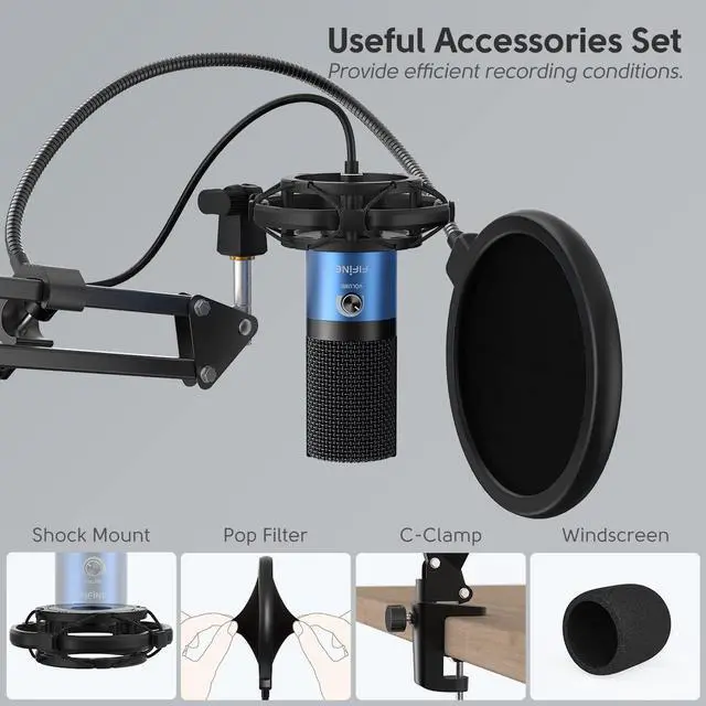 Useful Accessories-The shock mount and pop filter work together to clear out annoying noises for your recording.