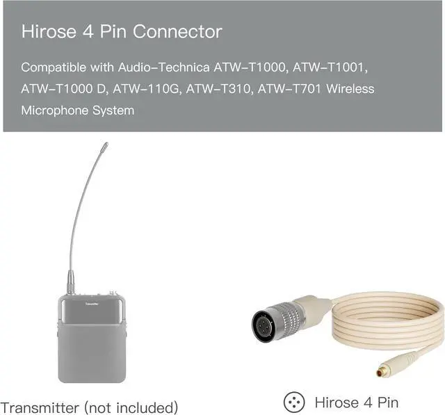 Hirose 4pin Plug Compatible With Audio-Technica ATW-T1000, ATW-T1001, ATW-T1000 D, ATW-110G, ATW-T310, ATW-T701 Wireless Microphone System