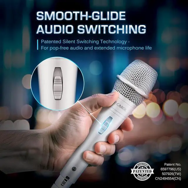 Ls patented Slide Potentiometer Switch delivers smooth, professional-grade sound. Its variable resistance design helps eliminate static and feedback while extending mic life