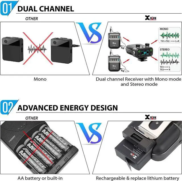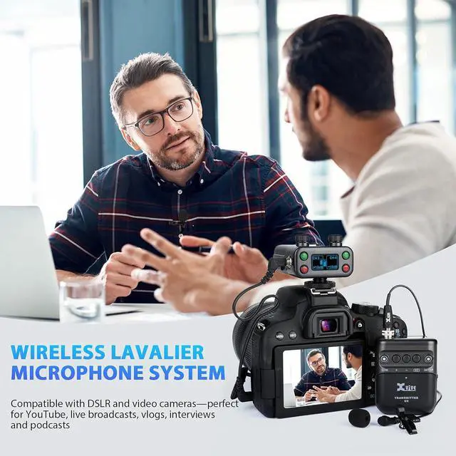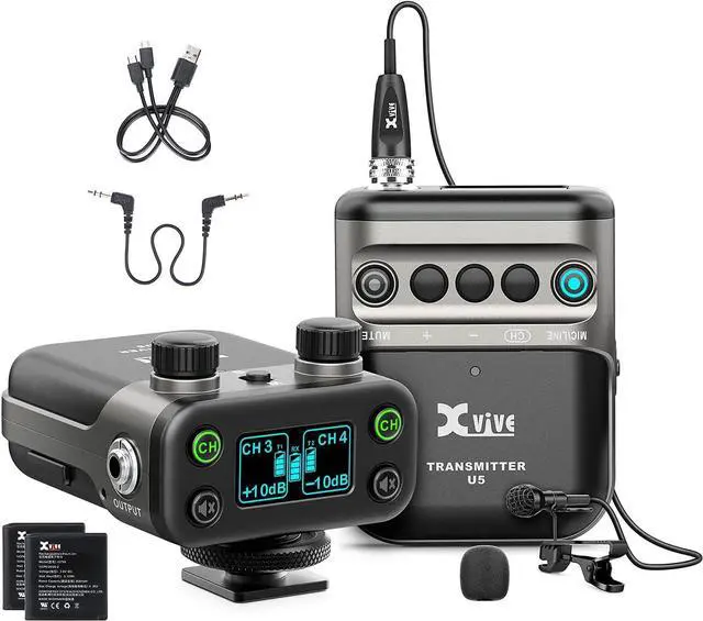 FULL COMPATIBILITYXvive U5 is a dual channel wireless lavalier microphone system come with LV1 professional lavalier microphones allowing you to send wireless signals from lavalier microphones or other audio sources to a DSLR camera, digital camera, recorder, smart phone and other audio device. And can be used for video shoots, livestreams, interviews, weddings and more. 3.5 mm TRS analog output, transfer analog to IOS lighting or Type C (cables not included)