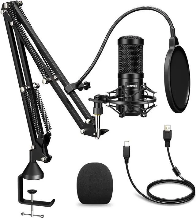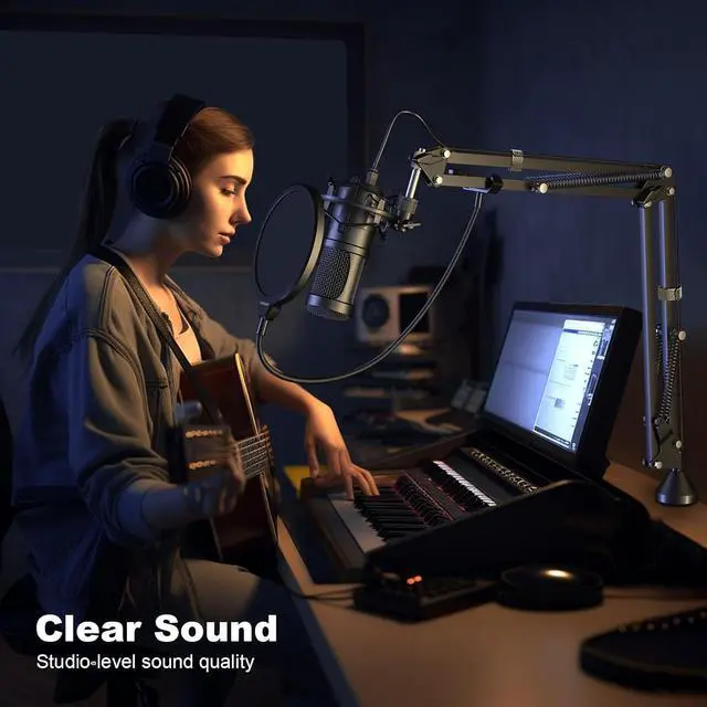 Flexible and Sturdy: This package includes a condenser microphone, suspension scissors arm, metal shock mount, double-layer pop filter and windshield. It is easy to install and can rotate in all directions when used can be to move the microphone to the desired position.