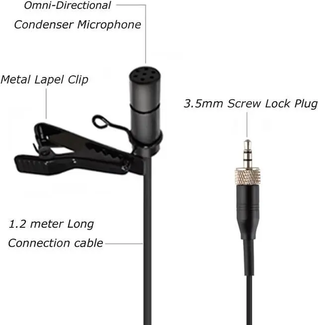 Lightweight & Invisible Design: Black miniature lavalier lapel design, light, cozy, stable, suitable for long time adorn, it can be conveniently clipped to the tie or collar, it' s an replacement for the original wireless system microphone