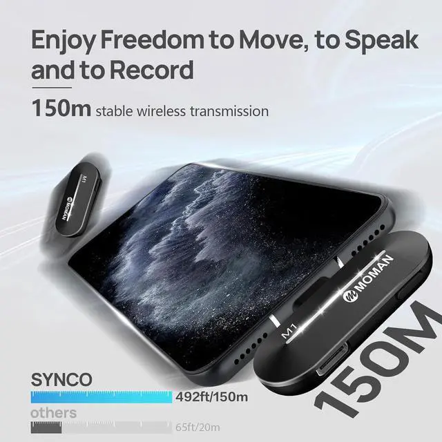 Universal Wireless SystemThe small lapel microphone is free of wire. You can either hold it or clip it on your shirt. The signal can cover up to 65ft, helping you to get rid of messy wires and making it possible to record or take video at a further distance indoors or outdoors.