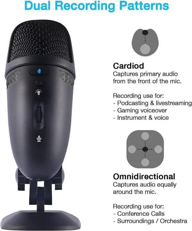 Multi-Purpose Recording: The audio quality makes this microphone ideal for podcasts, vlogging, voice-overs, interviews or as a premium gaming mic. With both Omnidirectional and Cardiod (directional) recording patterns, this microphone is perfect for recording individual vocals, or the entire group!
