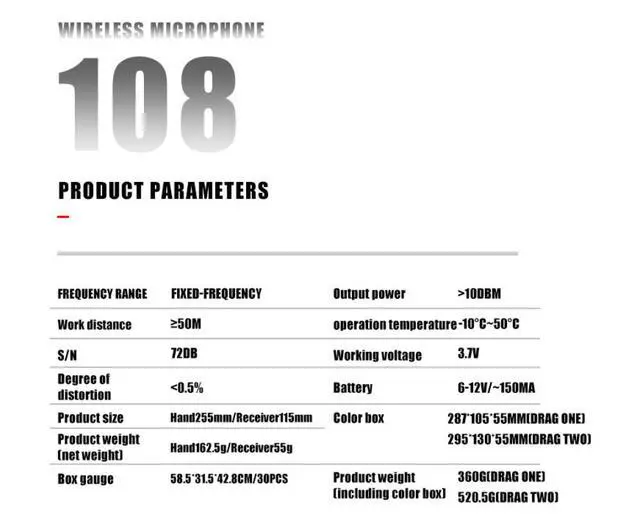 Wireless microphone 108 charging model - one for two use, suitable for home use, KTV, outdoor audio, conference and performance. Gold color-One pull one release