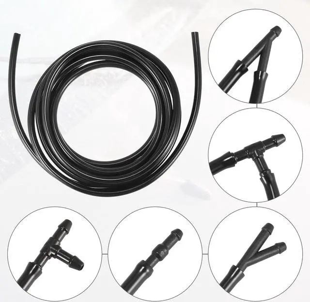 Front Windshield Washer Hose Kit Fit for Honda Accord with 3 Meter Washer Fluid Hose 12 Pcs Hose Connectors - Pack of 15 Black