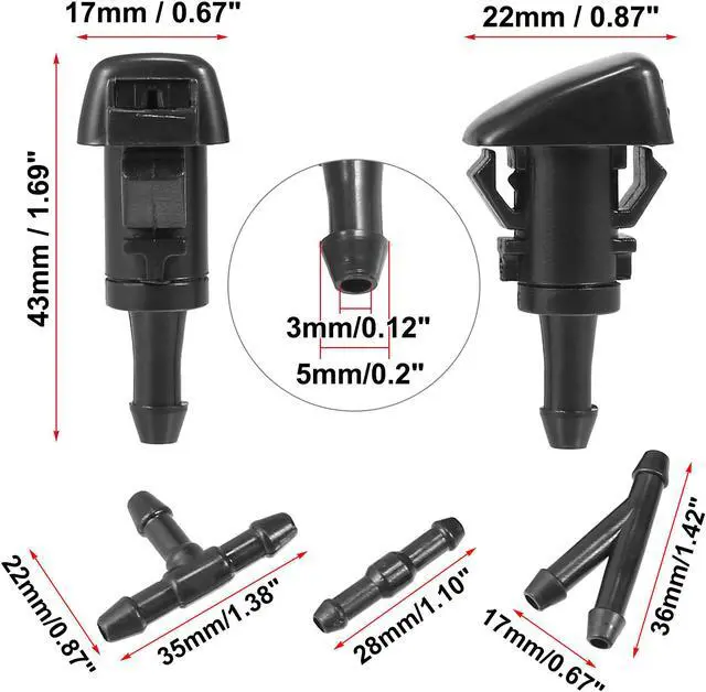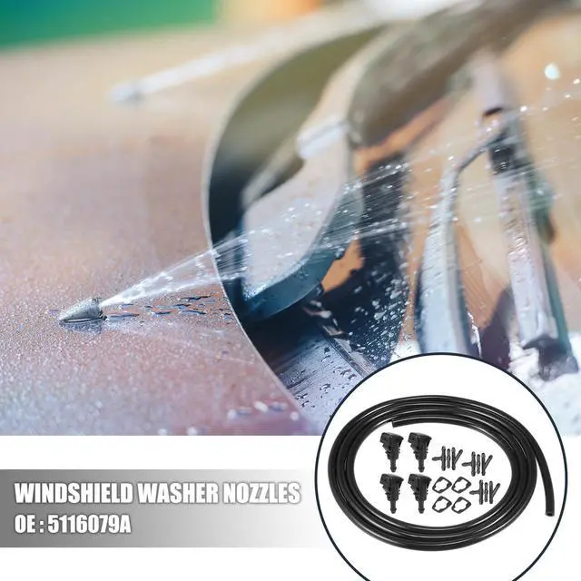 [Package Included] 4 x Windshield Washer Nozzles, 1 x 1.5 Meters Windshield Washer Hose, 9 x Windshield Wiper Hose Connectors, 4 x Rubber Gasket.
