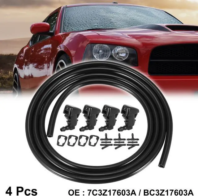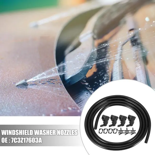 This kit will replace both front windshield washer nozzles and the hose that connects to them.
