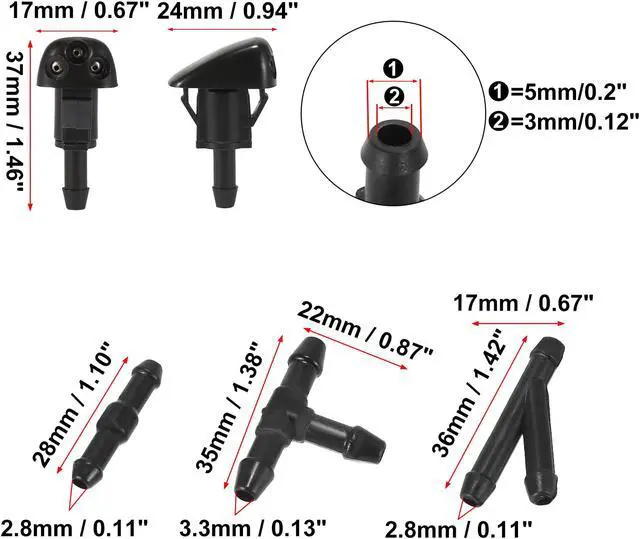 Replace for your old, broken, cracked, inaccurate spray or clogged front windshield washer nozzle, come with some connectors and hoses.