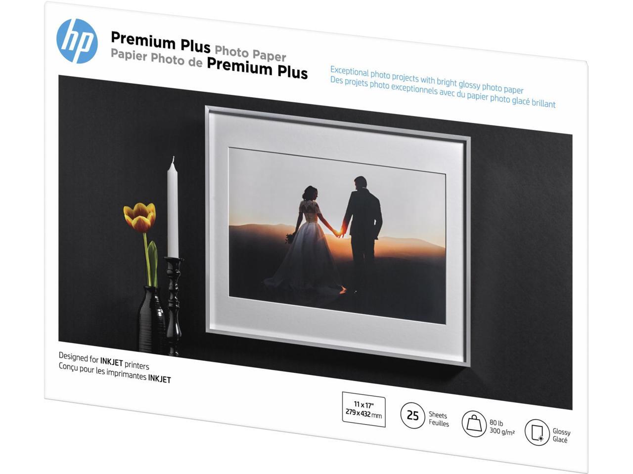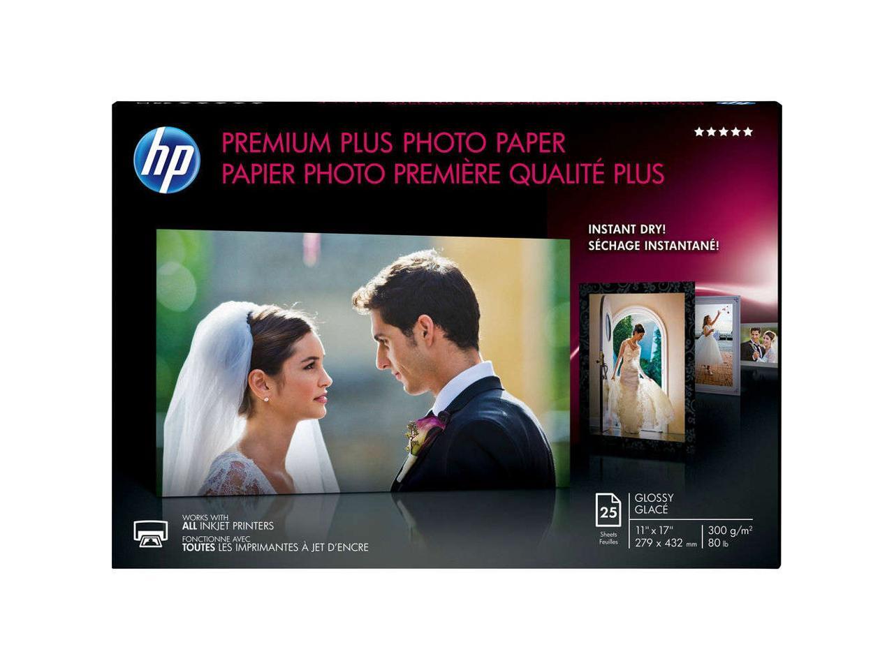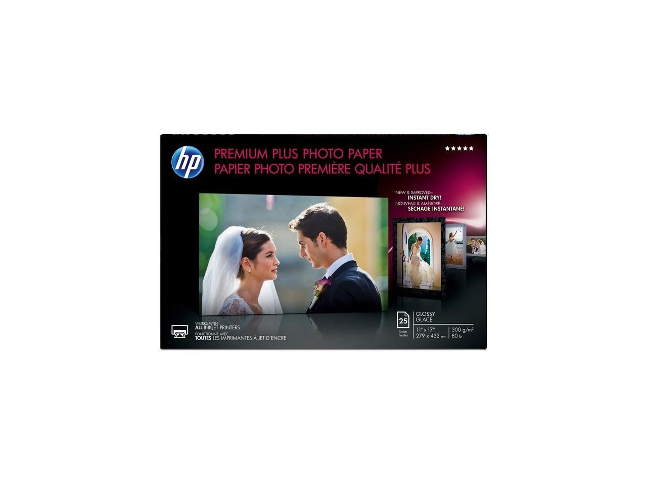 HP Premium Plus Photo Paper, Glossy, 80 lb, 11 x 17 in. (279 x 432 mm), 25 sheets CV065A
