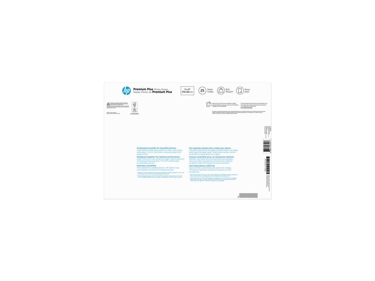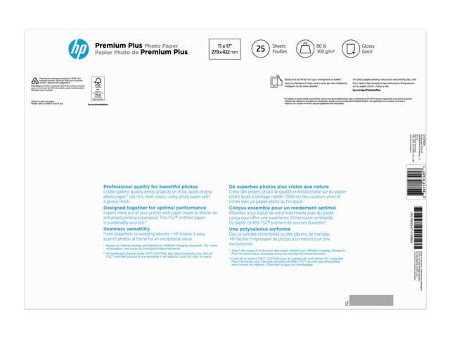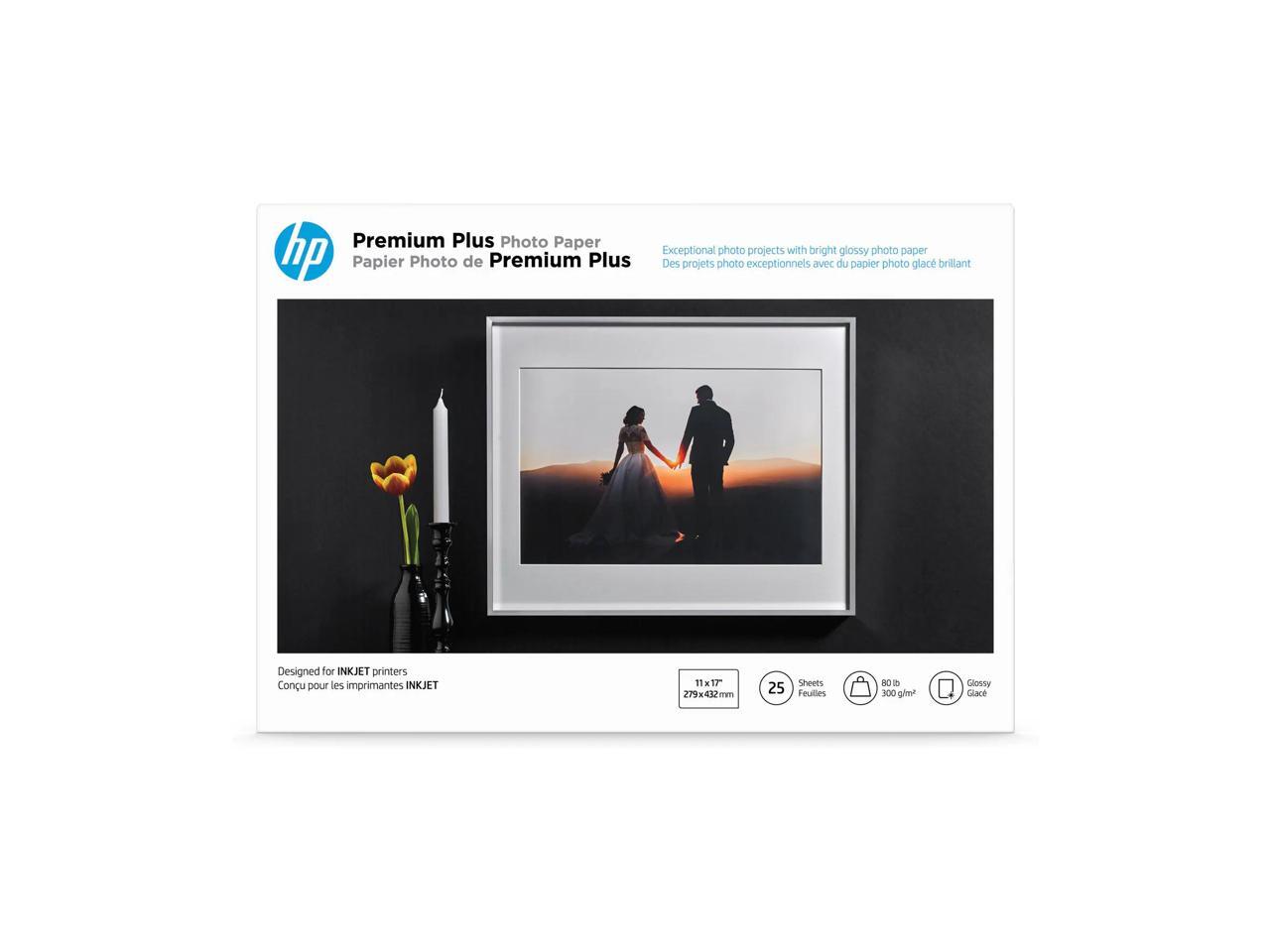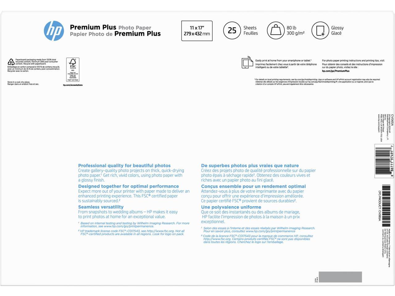 HP Premium Plus Photo Paper, Glossy, 80 lb, 11 x 17 in. (279 x 432 mm), 25 sheets CV065A