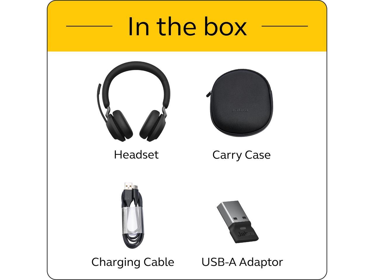 Jabra Evolve2 65 Headset - Stereo - Wireless - Bluetooth - 98.4 ft - 20 Hz - 20 kHz - Over-the-head - Binaural - Circumaural - Noise Cancelling, MEMS Technology Microphone - Black