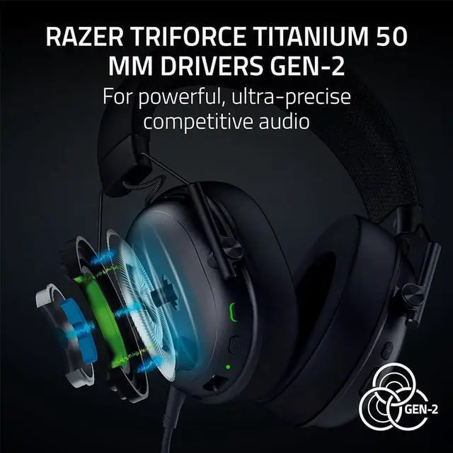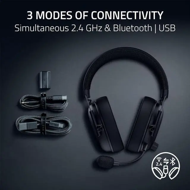 Razer BlackShark V3 Headset - Stereo - USB - Wired/Wireless - Bluetooth/RF - 32 Ohm - 12 Hz to 28 kHz - Over-the-head - Binaural - Circumaural - Uni-directional Microphone - Black