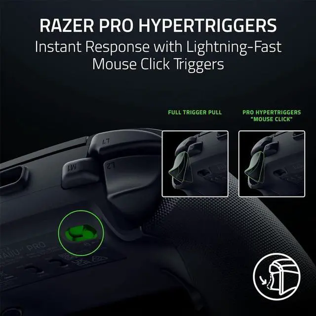 Fine-tuned for the most precise in-game control, dominate with laser-sharp aim using anti-drift magnetic TMR thumbsticks engineered for cutting-edge accuracy. Razer Pro Hypertriggers