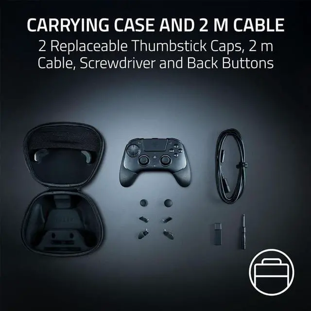 Always be tournament ready with a carrying case that holds your controller and its accessories, including 2 replaceable thumbstick caps, a 2 m cable, and a toolkit for back button removal.