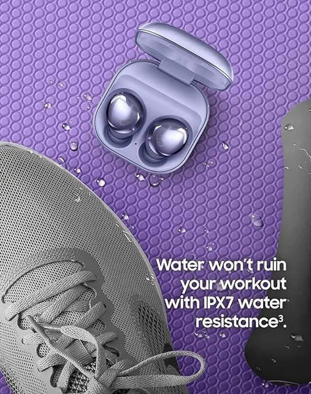 A home theater for your ears Immerse yourself in studio sound quality Silky treble and a full, pulsing base deliver simply amazing, premium sound. Make every movie feel like opening night, talk like you're there in person and play like your game is more real than life itself. Worry-free water resistance Water won't ruin your best jams while giving the dog a bath or washing the car thanks to IPX7 water resistance that even protects from immersion up to 3 feet deep for 30 minutes. Make your Galaxy Ecosystem come alive Enhance everyday moments Pair Galaxy Buds Pro with other Galaxy devices, like the new Galaxy S21 5G, and send a message, search music or order coffee -all hands free.