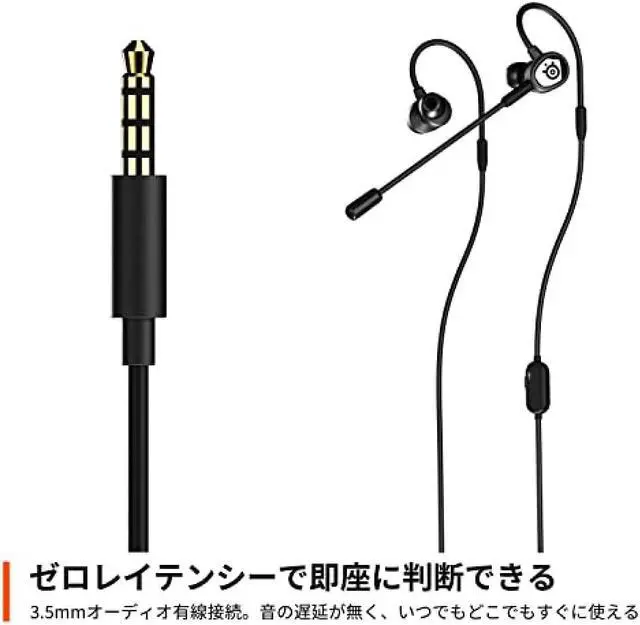 SteelSeries Gaming Earphones, Detachable Microphone, Tusq, Noise Canceling, PC/PS/Switch/Smartphone Compatible, Ear Hooks, Black, 3 Levels Can Be Changed to Match Your Ear Size