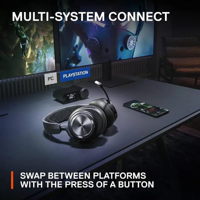 OLED Base Station - Dual USB ports let you connect your PC, Xbox, Mac, Play-Station, or Switch, swap between them with the press of a button, charge your spare battery, take full control over your EQ, volume, & ChatMix directly without leaving your game