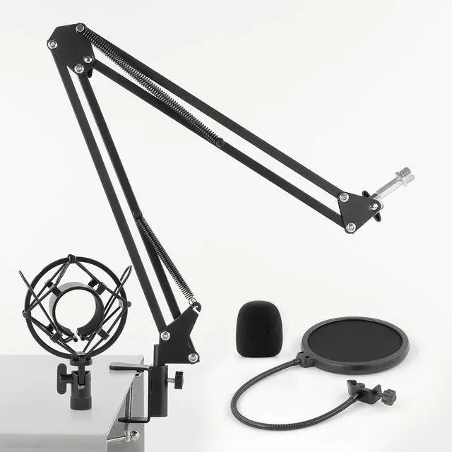 Desk mounted boom stand (up to 30" fully extended) for stable and adjustable microphone placement