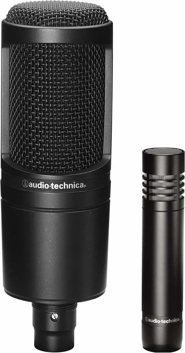 AT2041SP Studio Bundle Includes: AT2020 Side Cardioid Condenser Microphone Small Diaphragm Cardioid Condenser Microphone AT2021 Articulated and Threaded Pedestal Stand for AT2020 Professional Pedestal Stand for AT2021 Two Protective Bags