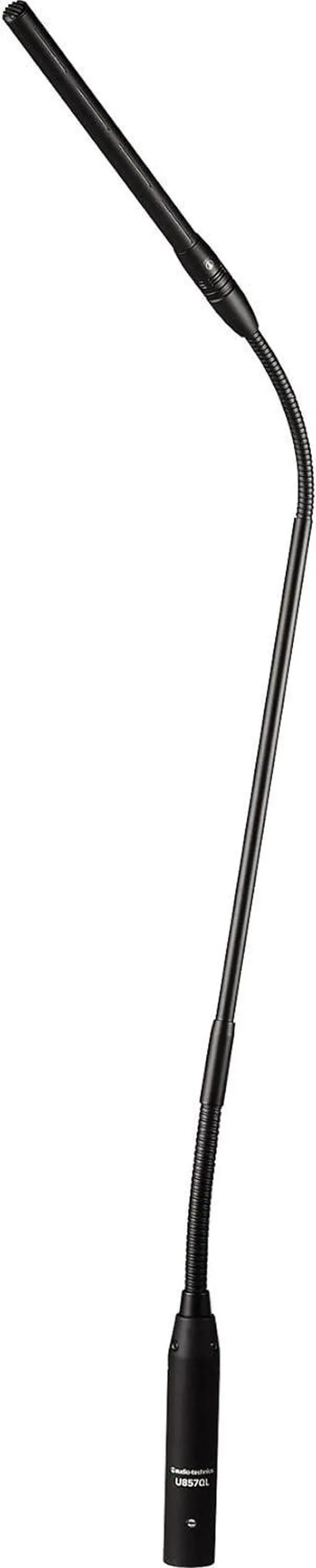With advanced capsule design coupled with carefully engineered internal electronics, the U857QLU Aniline condenser delivers clear, consistent sound for a variety of installed applications. The 23.74" version of U857QU, the U857QLU features Audio-Technician's Aniline line-cardioid element. The microphone is designed to plug directly into a panel- or desk-mounted XLRF-type connector. Its ultra-flexible, robust gooseneck permits easy adjustment into desired shape while resisting inadvertent repositioning. Featuring Unfigured innovations that offer unsurpassed immunity from radio frequency interference, the U857QLU accepts new interchangeable elements, available in cardioid, hyper cardioid, omnidirectional and Aniline line cardioid polar patterns.