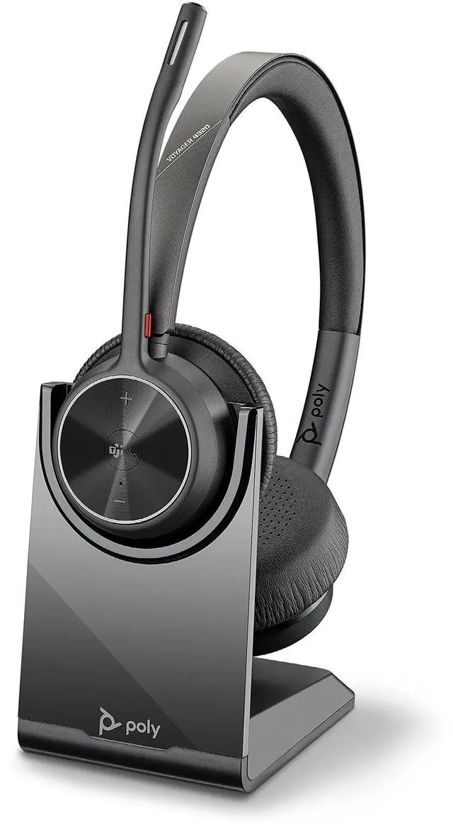 OverviewFree your workers from their desks with the perfect entry-level Bluetooth® wireless headset. Meet the Voyager 4300 UC Series. Its everything your teams need to stay productive and connect to all their devices whether at home or in the office. Keep your teams productive with all-day comfort and dual-mic Acoustic Fence technology that eliminates background noise. Phenomenal flexibility, connectivity, and freedom? Yes please! What's in the box? USB Type-C® charging cable; Quick start guide; Travel pouch; USB Type-A adaptor; Charging stand; Wireless headsetDisclaimers With included BT700 USB adapter.