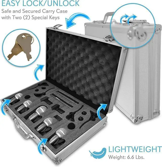 From the ManufacturerProfessional PerformanceTo maximize performance, each model microphone is designed to capture a specific sound emitted by the musical instrument. The big drum microphone is designed for bass drums and low frequency musical instruments due to its exceptional frequency response. This microphone is tuned accurately to capture low-end punch. The small drum microphone is ideal for Tom-Toms and snare drums. Condenser microphones are excellent in reproducing the sounds of cymbals, pianos, and vocals. This microphone specializes in capturing sensitive and flat responses.