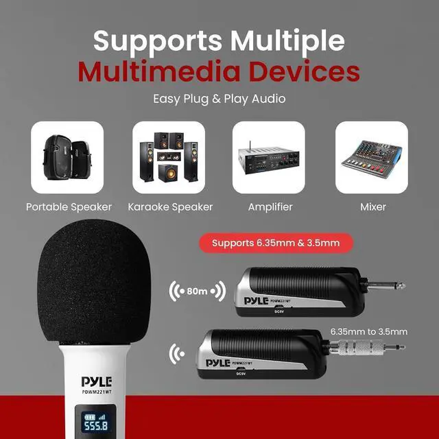 4 CHANNEL PORTABLE SYSTEM Features 4 independent wireless microphones with adjustable channels, providing wide frequency response and low distortion sound. Ideal for conferences, performances, and events with clear, crisp audio.