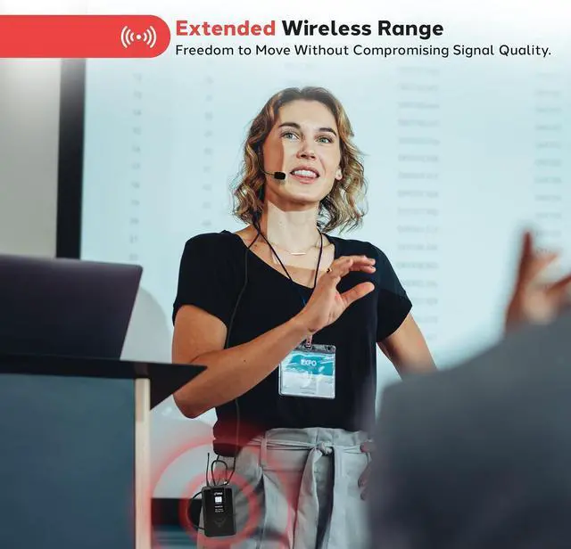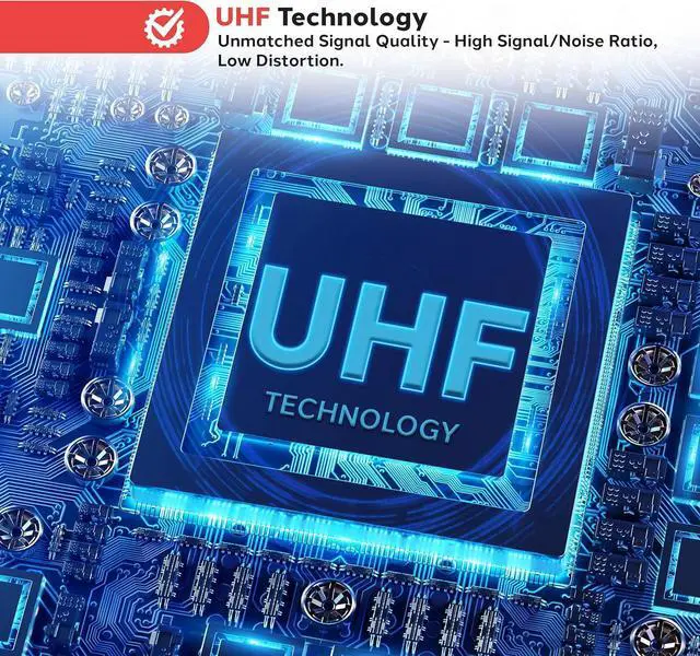 UHF TECHNOLOGY: Experience top-notch audio transmission with wireless UHF signal, delivering clear, distortion-free vocals up to 165 feet away. Ideal for conferences, broadcasting, and presentations, ensuring crisp sound reproduction.