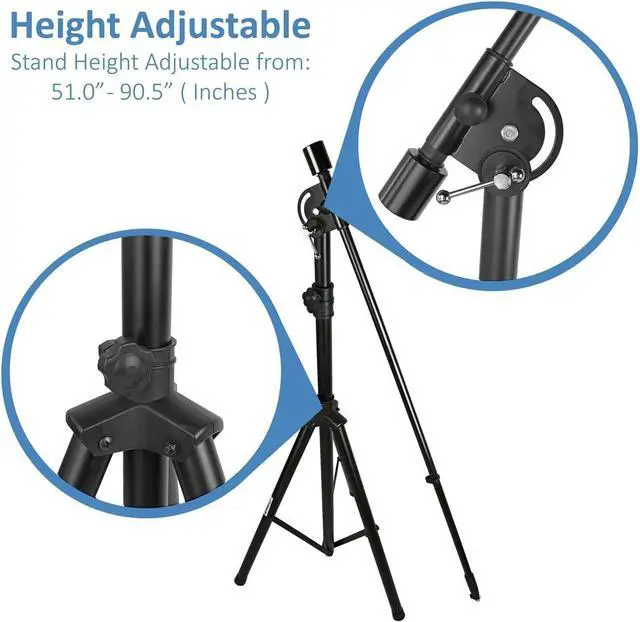 HEIGHT ADJUSTABLE: Adjust the height on the microphone stand to fit your needs easily with the quick release clamp. Stand height adjustable from: 51.0 - 90.5.