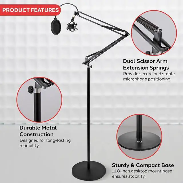 Convenient floor-standing design - position your mic exactly where needed - extending, angle & tilting adjustment