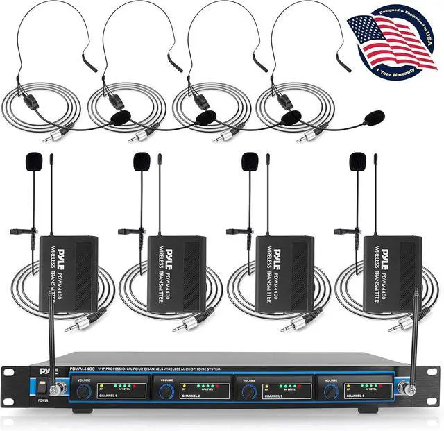 QUAD FREQUENCY CHANNEL: This portable VHF wireless microphone system by Pyle Pro has 4 channel design with broad frequency range for cordless singing to karaoke music and mobility for energetic on stage performance