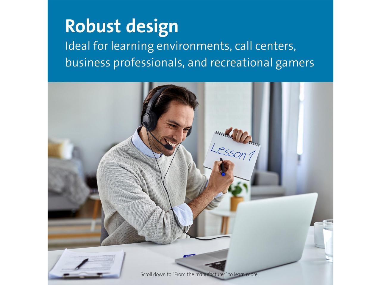 The flexible boom-style microphone can be rotated up to 270 degrees. Robust design with durable materials, including a six-foot 3.5mm cord that allows for flexible movement make this headset ideal for all environments.
