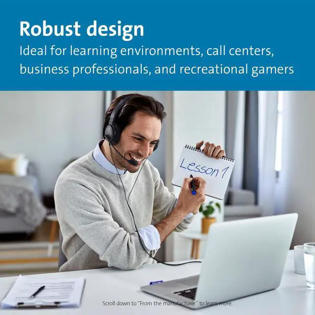 • The flexible boom-style microphone can be rotated up to 270 degrees. Robust design with durable materials, including a six-foot 3.5mm cord that allows for flexible movement make this headset ideal for all environments.