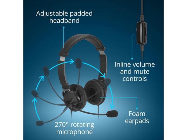 Kensington Classic EQ USB-C Headset with Mic and Volume Control, 6 ft (1.8m) Nylon Braided Cord, for School, Kids, Adults, Padded Adjustable Headband,