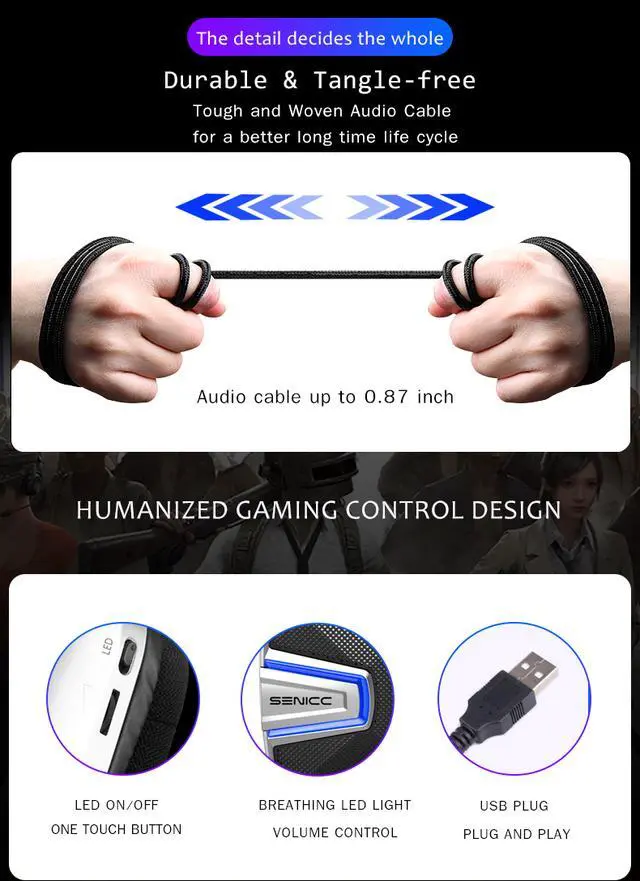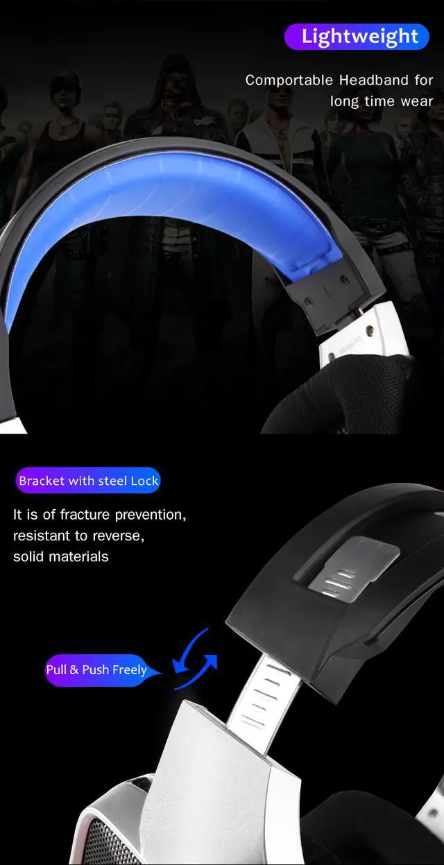Retail Box Features: Built-in Virtual 7.1 Sound Card, and high Acoustic positioning precision High Precisive 40mm Magnectic Driver, clear sound operating strong brass LED soft lights, advanced backlight technology, soft but not dazzling Passive Noise Reduction Makes the game more focused and reduces the impact of the "cranial effect" A variety of young and trendy fashion colors, integration of games and fashion Superior comfortable headband sponge pad, relieve head pressure Precise Alloy locks, adjustable headband, suit for any head