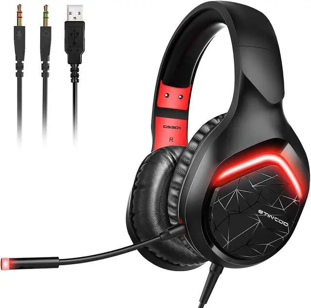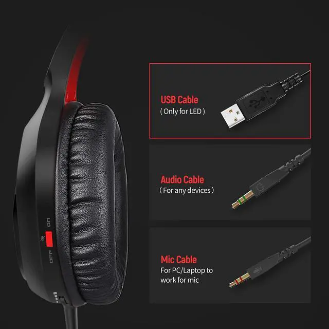 HUMANIZED DESIGN: Large full-ear earmuffs, soft leather ear pads, adjustable headband and durable headband feel to provide long lasting comfort. The lightweight design will release the weight around your neck, the LED light designed on the earcups highlight the atmosphere of the game.