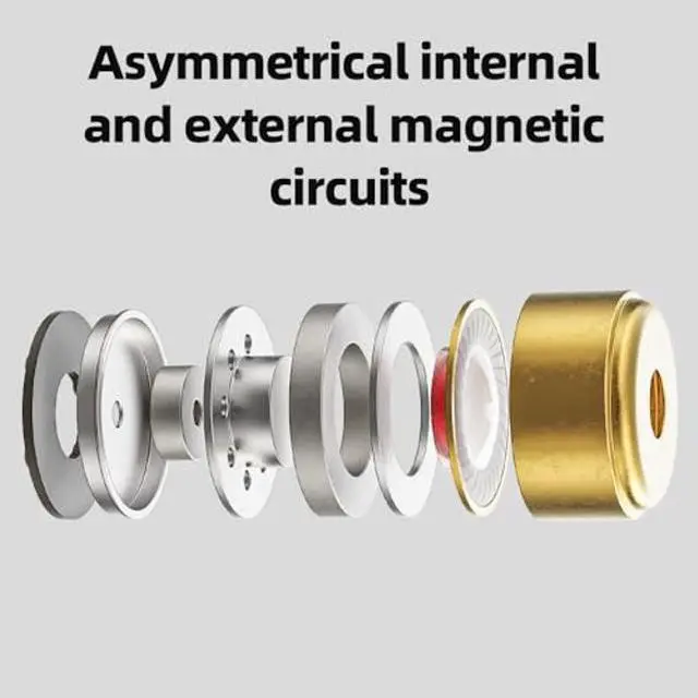 Asymmetrical internal and external magnetic circuits: Compared to the traditional design of a single internal magnet or a single external magnet, the asymmetrical internal and external magnetic circuits design effectively increases magnetic field density around the voice coil - leading to a more powerful and robust sound as well as improved transient response.