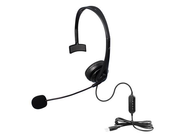 USB Unilateral Headset, Wired USB Headphone With Microphone Noise Reduction And Audio Control For PC Computer Business Communication Online Chat UC Skype Lync Softphone Call Center Office Gaming-Black