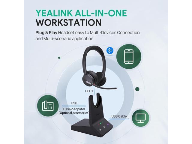 Yealink WH64 Wireless Headset, DECT & Bluetooth Dual-Mode 606 ft Range for Teams