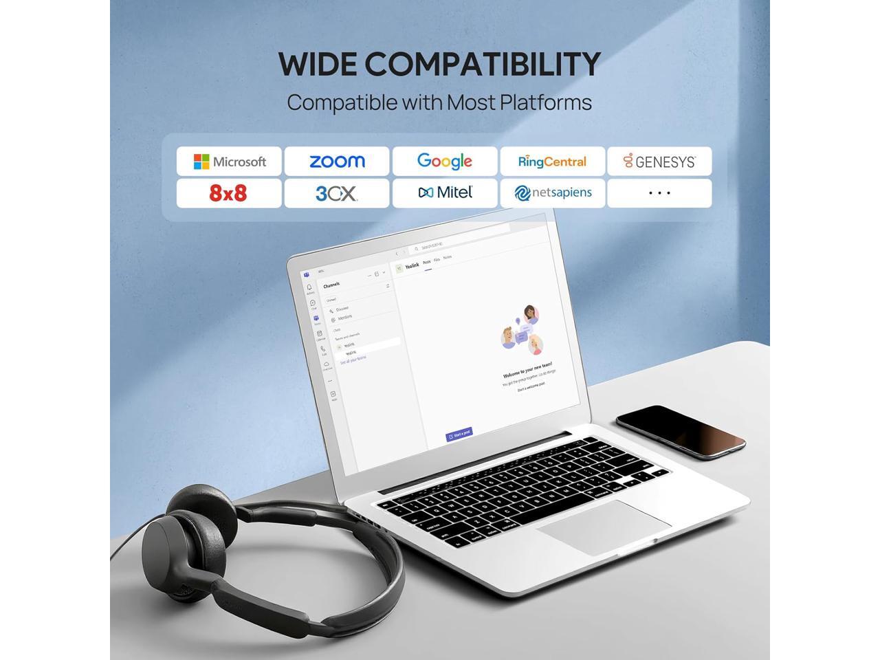 - PLUG-AND-PLAY for Teams Certified: Works seamlessly with PC, Mac, laptops, and desktops via USB-A—no drivers needed. Ideal as a reliable USB headset for remote work, customer service, or conference calls.Certified for Microsoft Teams and optimized for Zoom, Skype, Google Meet, etc