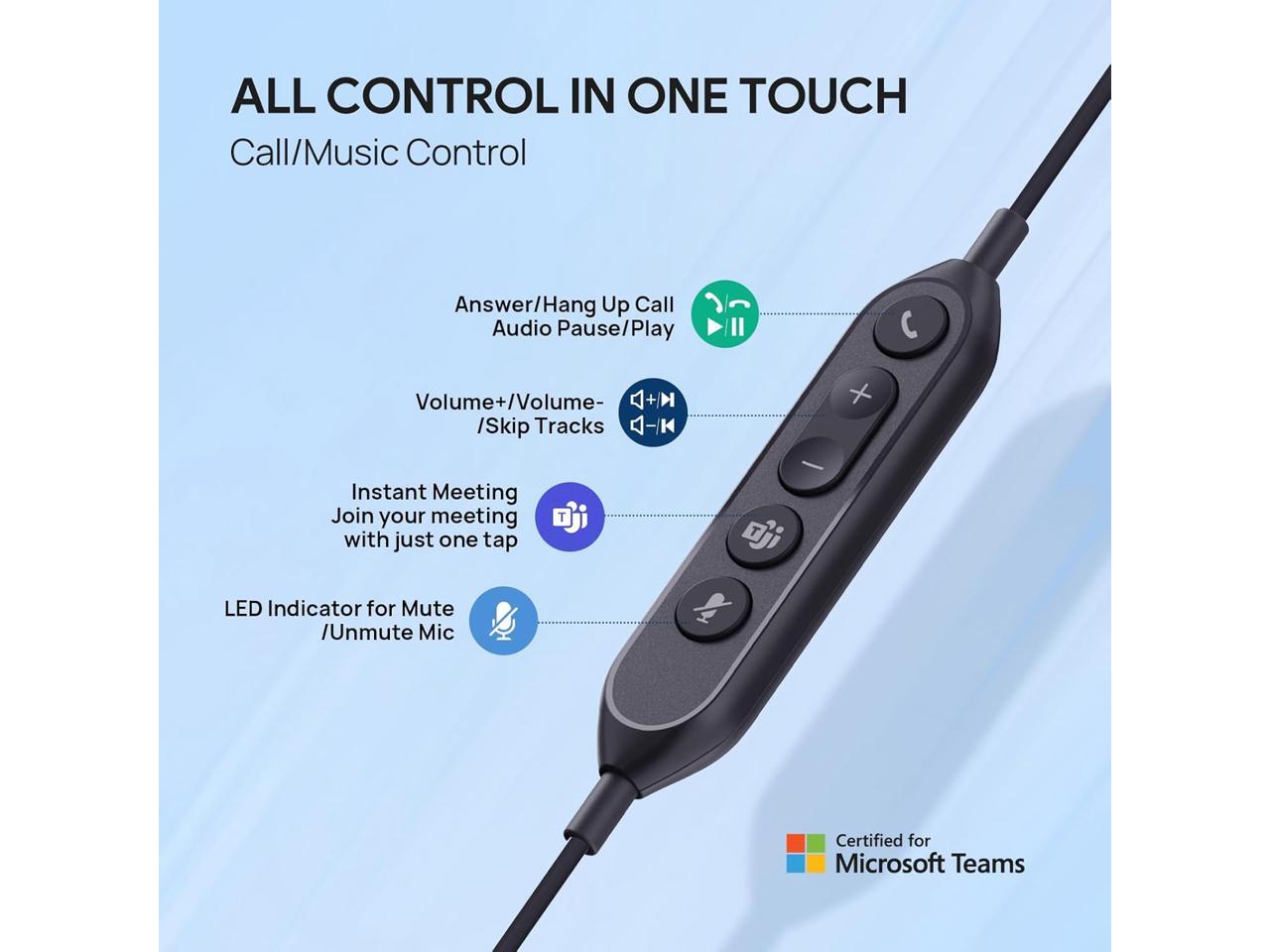 - SMART IN-LINE CONTROLS & TEAMS INTEGRATION: One-touch mute, volume adjustment, call/music control, and a dedicated Teams button to join meetings instantly. No more fumbling with software—take command right from your wired headset.
