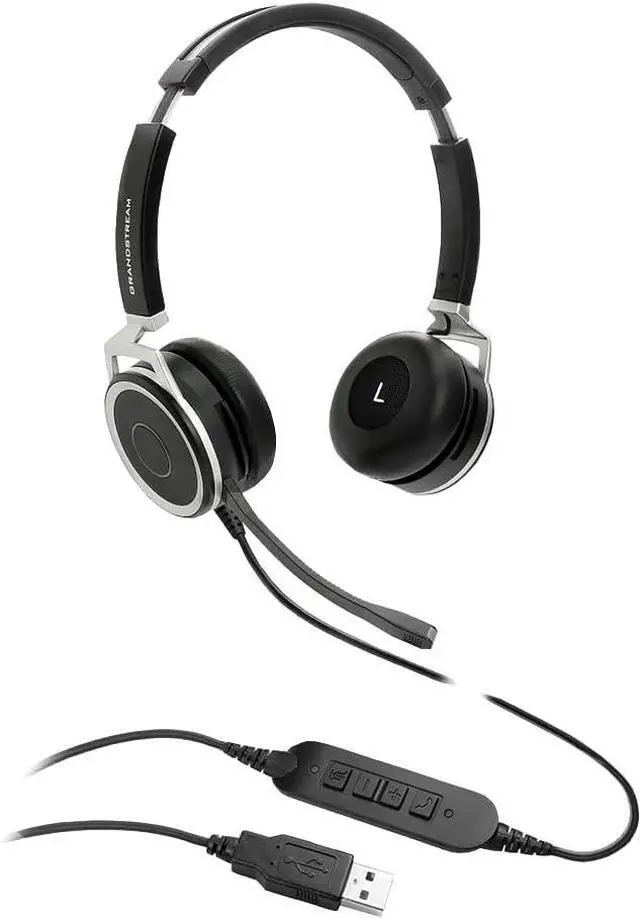 Crystal-Clear Calls, All-Day Comfort. The Grandstream USB Corded Dual Headset is your go-to solution for professional-grade audio in busy work environments. Featuring HD voice clarity and advanced noise-canceling technology, it ensures every conversation is crisp and distraction-free. With a plug-and-play USB 2.0 connection, its compatible with laptops, desktops, and Grandstream IP phonesperfect for remote teams, call centers, and reception desks. The adjustable headband and soft ear cushions deliver all-day comfort, while in-line controls make volume and mute functions effortless. Stay focused, sound sharp, and work smarter with Grandstream.