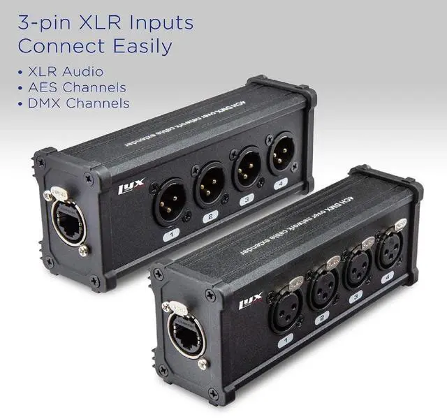 VERSATILE XLR BREAKOUT: 4 CH. 3 PIN FOR STAGE SOUND, LIGHTING, RECORDING STUDIO : Ideal for a wide range of applications including stage sound, lighting, and recording studio settings. With 4 channels and 3 pins, this XLR cable breakout can be used to connect a variety of audio devices to a single Cat 6 network cable up to 330 ft long.