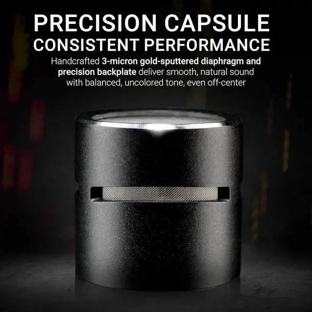 , The 3-micron gold-sputtered diaphragm & sophisticated backplate deliver natural, balanced sound with reliable off-axis performance, making this one the most trusted drum mics