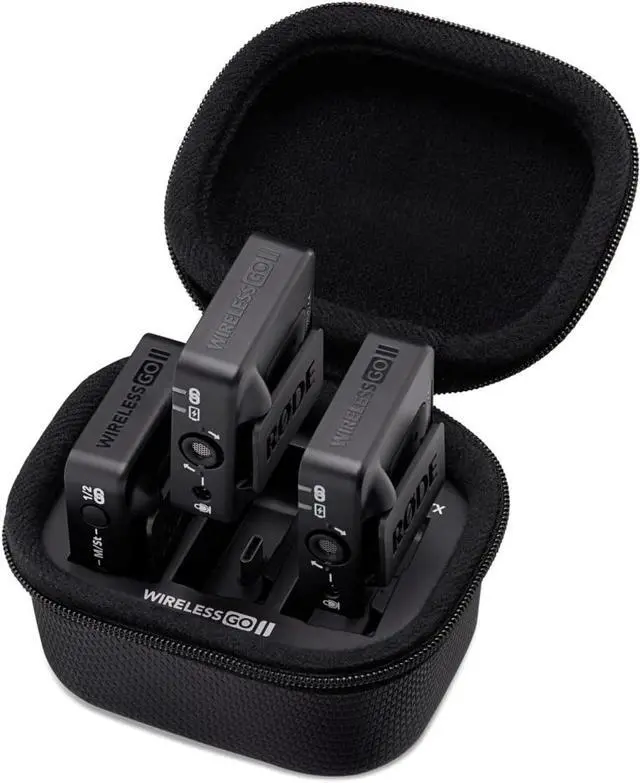 Custom charging case for the Wireless GO II Accommodates two transmitters and a receiver Facilitates two full recharges of the system for up to 21 hours of use Rugged enclosure and zip system for protection in transit or storage Charging status LED